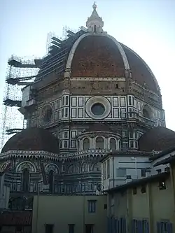 Conçu comme le couronnement de l'immense chantier de la cathédrale, le dôme apparait dès le début comme extrêmement difficile à réaliser, à la fois par la complexité technique, étant donné que depuis le temps du Panthéon de Rome rien n'a plus été tenté pour construire un dôme d'un diamètre aussi grand, et d'autre part de par les coûts énormes de réalisation. Les techniques traditionnelles, comprenant l'utilisation de renforcement temporaire constitué par des poutres en bois reposant contre les côtés du tambour, ne pourraient jamais supporter le poids de la maçonnerie; la seule solution était d'ériger un dôme sans nervures et malgré le scepticisme général, le projet de Brunelleschi est finalement approuvé en 1420.