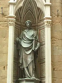 - Saint Étienne représenté par une statue de Lorenzo Ghiberti dans une des niches (tabernacoli) de l'église d'Orsanmichele.