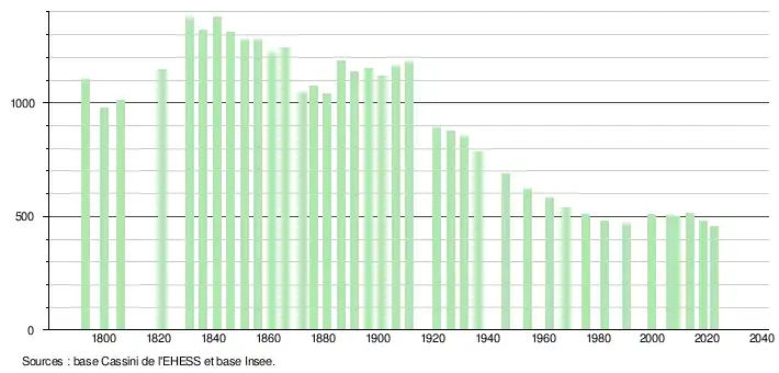 - ↑ Fiches Insee - Populations de référence de la commune pour les années 2006, 2007, 2008, 2009, 2010, 2011, 2012, 2013, 2014, 2015, 2016, 2017, 2018, 2019, 2020, 2021 et 2022.