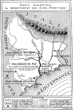 Cette dénomination s'est étendue récemment à l'aire linguistique occitane où une telle particularité d'une série d'articles définis commençant par S au lieu de L se rencontre également de façon parcellaire dans une zone comprise entre Grasse et Nice, englobant les arrondissements de Grasse, Castellane, les villes de Puget-Théniers et Levens (territoires dans lesquels l'article se présente généralement sous les formes so, sa au singulier, les formes du pluriels étant plus variables).