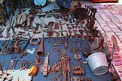 À l’origine, les principaux centres de travail du fer sont Puebla et Oaxaca[30]. Le fer d'Oaxaca est exceptionnellement malléable et léger, ce qui permet des conceptions complexes et des outils impossibles avec d'autres types de fer. La plupart des objets en fer d'Oaxaca datent desXVIIe et XVIIIe siècles et comprennent des serrures, des meubles et des ciseaux, souvent dotés de motifs complexes[33].