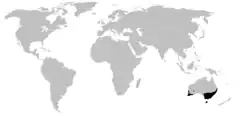 En Australie, elle a été observée dans le Sud-Est du Queensland, en Nouvelle-Galles du Sud, dans le Territoire de la capitale australienne, au Victoria, dans le Sud-Est de l'Australie-Méridionale, dans le Sud-Ouest de l'Australie-Occidentale et en Tasmanie[2].