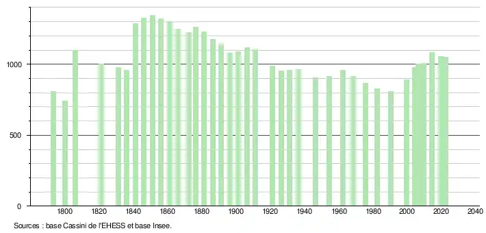 - ↑ Fiches Insee - Populations de référence de la commune pour les années 2006, 2007, 2008, 2009, 2010, 2011, 2012, 2013, 2014, 2015, 2016, 2017, 2018, 2019, 2020, 2021 et 2022.