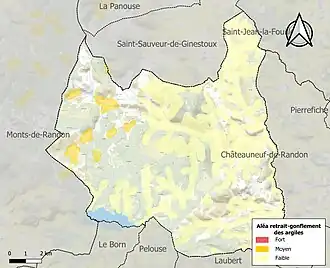 Le retrait-gonflement des sols argileux est susceptible d'engendrer des dommages importants aux bâtiments en cas d’alternance de périodes de sécheresse et de pluie. 3 % de la superficie communale est en aléa moyen ou fort (15,8 % au niveau départemental et 48,5 % au niveau national). Sur les 186 bâtiments dénombrés sur la commune en 2019, 1 sont en aléa moyen ou fort, soit 1 %, à comparer aux 14 % au niveau départemental et 54 % au niveau national. Une cartographie de l'exposition du territoire national au retrait gonflement des sols argileux est disponible sur le site du BRGM[25],[Carte 2].
