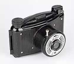 - 1953 AS Phot. 6 × 9 en Bakélite. Initialement produit sous le nom de Gevabox par Gevaert associé à Kinax le modèle est cédé à As de Trèfle[11],[12].