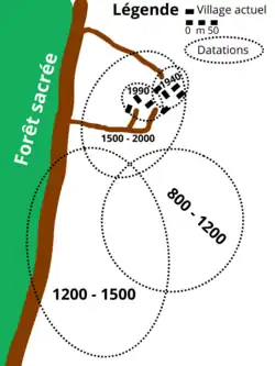 Les fouilles archéologiques réalisées en 1986 sur les sites associés au commencement de l'histoire Ashantis révèlent des datations au carbone 14 qui remettent en question les hypothèses actuelles sur les migrations Akan et l'origine des Guan. En effet, ces fouilles démontrent que le site est occupé dès le début du second millénaire et accueille plusieurs milliers d'habitants. Certaines datations remontent à plusieurs siècles avant J.-C.[3],[13].