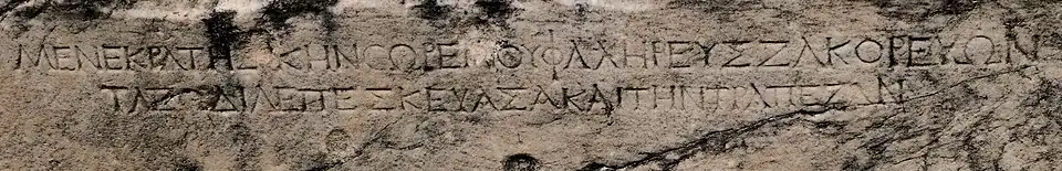 - ↑ (en) Pillar with votives dedicated to Asklepios. "Praxias' dedication"