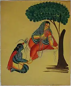 Dans le Sangitadarpana, le ragini Varati représente la Khandita Nayika[2].