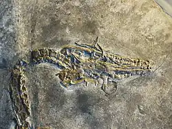 Son corps élancé était bien adapté à la vie aquatique, mais ses pattes n'étaient pas transformées en nageoires, contrairement à d'autres reptiles marins de l'époque. Son crâne était léger et se terminait par un museau droit, allongé et émoussé. Sa mandibule était plutôt massive par rapport à sa mâchoire. Sa denture consistait en dents effilées et légèrement incurvées. Son orbite était équipée d’une structure composée de 12 os, appelée anneau sclérotique, qui servait à renforcer l’œil et à le protéger pendant la plongée. Le cou et le corps étaient plutôt allongés et la queue était exceptionnellement longue ; à elle seule, elle correspondait à peu près à la moitié de la longueur de l'animal. Les vertèbres caudales indiquent que sa queue était comprimée latéralement. Les membres étaient courts et les os de l'avant-bras et de la jambe étaient plus courts que l'humérus et le fémur. Les griffes, cependant, étaient robustes et le tarse et le carpe étaient bien ossifiés[2],[3].