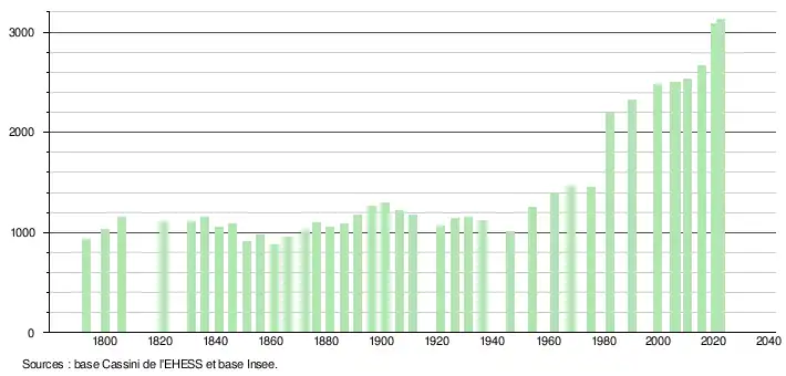 - ↑ Fiches Insee - Populations de référence de la commune pour les années 2006, 2007, 2008, 2009, 2010, 2011, 2012, 2013, 2014, 2015, 2016, 2017, 2018, 2019, 2020, 2021 et 2022.