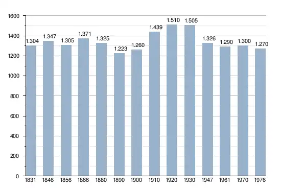 - Sources : INS, Rem. : 1831 jusqu'en 1970 = recensements, 1976 = nombre d'habitants au 31 décembre[2].