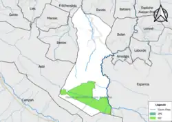 Les communes les plus proches[Note 1] sont[4] : Banios (1,7 km), Escots (1,7 km), Bulan (1,9 km), Fréchendets (2,4 km), Marsas (2,6 km), Arrodets (2,7 km), Lomné (3,3 km), Batsère (3,4 km).