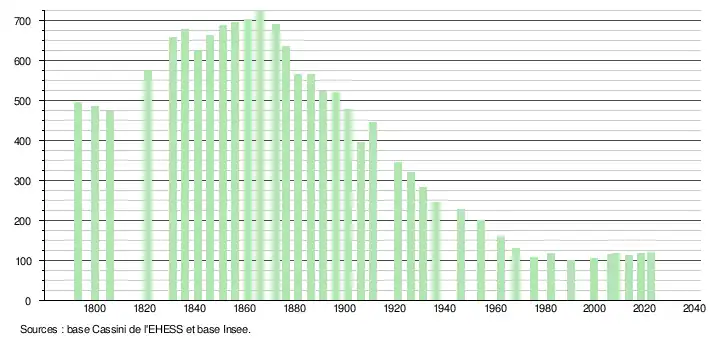 - ↑ Fiches Insee - Populations de référence de la commune pour les années 2006, 2007, 2008, 2009, 2010, 2011, 2012, 2013, 2014, 2015, 2016, 2017, 2018, 2019, 2020, 2021 et 2022.