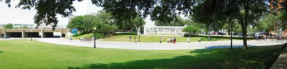 Vers la fin du trajet, le cortège et la voiture du président Kennedy quittent Main Street et tournent à droite sur Houston Street. Après quelques dizaines de mètres, le véhicule présidentiel négocie un virage serré à gauche sur Elm Street, contournant ainsi Dealey Plaza. À ce moment, Nellie Connally, soulagée comme tous les occupants par l'accueil fait au cortège, fait remarquer au président qu’il ne pourra pas dire que Dallas ne l’aime pas[19].