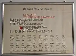 , sur archivescantonales.jura.ch, (consulté le ) - ↑ République et Canton du Jura, « Débats de l'Assemblée constituante jurassienne - La Constitution (1977-1978) »