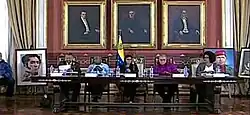 Delcy Rodríguez est élue présidente à l'unanimité le 4 août au cours de la séance inaugurale qui s'est tenue dans le salon Elliptique du palais fédéral législatif, l'hémicycle de la Plénière ne pouvant pas accueillir l'ensemble des élus et étant occupé par les députés de l'Assemblée nationale opposés à la constituante et se considérant toujours en fonctions[12], [13], [14]. Par la suite, l'ANC s'installe dans l'hémicycle protocolaire, anciennement occupé par le Sénat.