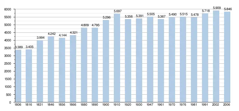 - Source : DGS - Remarque: 1831 jusqu'à 1981=recensement; depuis 1990=nombre d'habitants chaque 1er janvier[2]