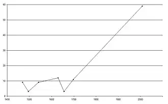 | Année | 1469 | 1495 | 1541 | 1629 | 1656 | 1698 | 2017 |
