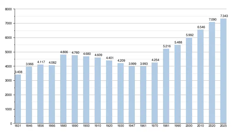 Les chiffres des années 1831 à 1970 tiennent compte des chiffres des anciennes communes fusionnées.