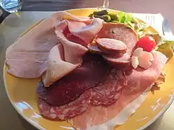 | Ingrédients | Charcuterie franc-comtoise, pomme de terre, cancoillotte, salade |