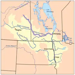 - La rivière Qu'Appelle qui s'écoule depuis l'ouest de la province de Saskatchewan et rejoint l'Assiniboine en entrant dans le Manitoba près de la ville d'Ellice.