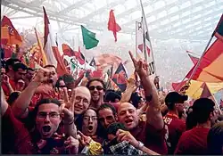 La Roma est le club supporté en large majorité dans la Ville éternelle, et le 5e club plus supporté d'Italie avec près de 2 millions de tifosi[3]dans la Botte. La rivalité avec l'autre club professionnel de la capitale, la Lazio, est l'une des plus fortes au monde[4],[5]. La Roma fut le premier club du Centre-Sud italien à remporter le championnat national, en 1942, et constitue depuis sa fondation l'opposition la plus sérieuse à l'emprise habituellement exercée sur la Serie A par les trois clubs de la Triade lombardo-piémontaise (l'Inter, le Milan et la Juventus).
