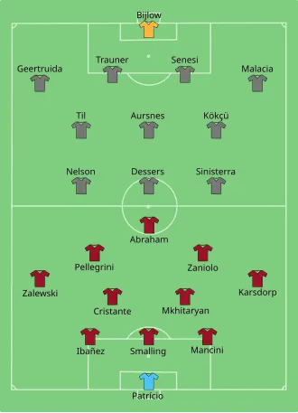 Le premier tableau liste l'effectif professionnel de l'AS Roma pour la saison 2025-2026. Le second recense les prêts effectués par le club lors de cette même saison.