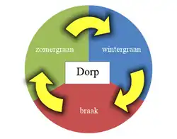L'assolement triennal suppose la division du finage cultivé en trois soles : une sole de céréale d'hiver (majoritairement du blé), une sole de céréale de printemps (orge, avoine) ou de légumineuse et une sole de jachère.