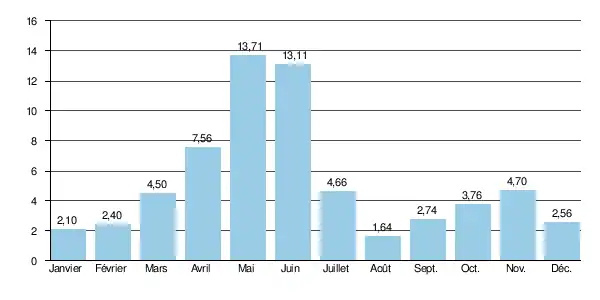 Le module de la rivière est de 2,14 m3/s.