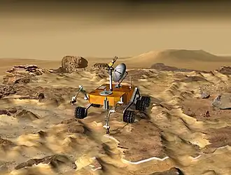 - Il est nécessaire de procéder à des prélèvements d'échantillons en de multiples localisations et à des profondeurs de la surface martienne supérieures à celles où l'oxydation produit une altération chimique. L'oxydation superficielle résulte de l'absence de champ magnétique ou de magnétosphère la protégeant des dangereuses radiations spatiales et des radiations électromagnétiques du Soleil[6],[7], ce qui peut facilement stériliser la surface jusqu'à une profondeur supérieure à 7,5 mètres[8],[9]. Pour parvenir sous cette couche stérile potentielle, un carottage géotechnique (marsotechnique ?) est actuellement à l'étude. Comme pour tout échange, l'apport d'une carotteuse augmenterait la charge utile au détriment d'autres instruments ;