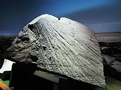 De plus, on observe, en certains endroits, des cônes de percussion charnockitiques enduits d'une couche de pseudotachylite.