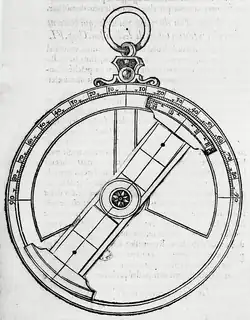 - l'autre de Giovanni Dondi (1330-1388) qui indique que « si on emploie sur un navire un astrolabe [planisphérique], plus il est pesant, mieux ça vaut, parce qu'en le tenant suspendu, dans le mouvement du bateau l'instrument reste immobile grâce à son poids[6]. ».