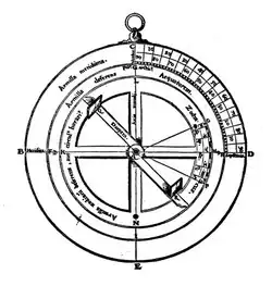 En 1530-1532, Oronce Fine dans un de ses ouvrages, Protomathesis[22], donne la représentation d'un instrument qui est dit être un horologium et qui remplit, entre autres, la fonction d'astrolabe nautique[N 11].