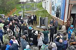 - ↑ (is) « Barnabörn Armstrongs afhjúpuðu minnisvarða », sur www.mbl.is (consulté le )
