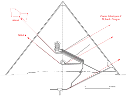 L'entrée de toutes les pyramides était située sur la face nord (à l'exception de la pyramide rhomboïdale du pharaon Snéfrou à Dahchour qui possède une seconde entrée à l'ouest). Cette entrée permettait à l'âme du défunt de s'orienter vers la région polaire du ciel. Les Égyptiens nommaient d'ailleurs les étoiles circumpolaires, les impérissables, puisque celles-ci restaient visibles toute la nuit, ne descendant jamais sous l'horizon.