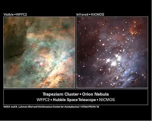 L'aspect du ciel en infrarouge est très différent de celui que révèle la lumière visible. Les étoiles se forment dans de grands nuages denses où le gaz est intimement mêlé à des grains de poussières. Ces nuages sont complètement opaques à la lumière visible : sur des cartes du ciel ordinaires, ils apparaissent sous l'aspect de grandes taches sombres. En infrarouge, au contraire, ce sont des régions très brillantes. Le rayonnement des étoiles en formation est absorbé par les poussières, qui, ainsi chauffées, émettent dans l'infrarouge. On peut aussi observer directement les étoiles en formation grâce à leur rayonnement infrarouge propre et mesurer le taux de formation d'étoiles d'une galaxie en fonction de sa luminosité dans l'infrarouge.