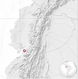 Cette espèce est endémique des plaines forestières Pacifique dans le sud-est de l'Équateur. Elle se rencontrerait dans les provinces d'Azuay, de Cañar et de Guayas, entre 200 et 460 m d'altitude[2]. L'espèce est désormais considérée comme rare et aucun individu n'a été observé depuis 1995 malgré des recherches répétées. Elle semble avoir disparu du río Patul dans la province d'Azuay, où elle était abondante[2].
