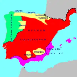 - ↑ (es) José Orlandis, Historia del reino visigodo español : los acontecimientos, las instituciones, la sociedad, los protagonistas, Madrid, Ediciones Rialp, , 461 p. (ISBN 978-84-321-3469-2, BNF 39293820, lire en ligne).