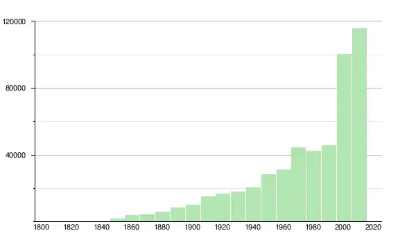 | 1880 | 6 099 | ▲ +43,47 % | |