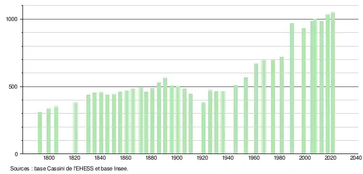 - ↑ Fiches Insee - Populations de référence de la commune pour les années 2006, 2007, 2008, 2009, 2010, 2011, 2012, 2013, 2014, 2015, 2016, 2017, 2018, 2019, 2020, 2021 et 2022.