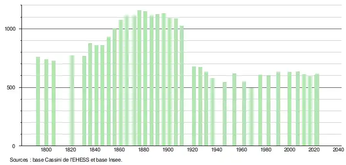 - ↑ Population municipale de référence en vigueur au 1er janvier 2025, millésimée 2022, définie dans les limites territoriales en vigueur au 1er janvier 2024, date de référence statistique : 1er janvier 2022.