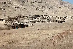 À l'ouest de la ville se trouve le plateau escarpé du désert libyen, où se trouvent d'anciennes carrières et des tombes rupestres du Ier au IIIe siècle[4]. Au centre de cette nécropole de 1,7 km de long se trouve un temple rupestre d'époque ptolémaïque et romaine à flanc de montagne, avec un parvis, deux salles de pierre et une niche de culte. La façade était décorée de demi-colonnes avec des chapiteaux de palmiers. Le temple rupestre était dédié aux dieux d'Athribis.