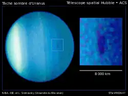 - ↑ (en) L. Sromovsky, Fry, P.;Hammel, H.;Rages, K, « Hubble Discovers a Dark Cloud in the Atmosphere of Uranus » [PDF], physorg.com (consulté le )
