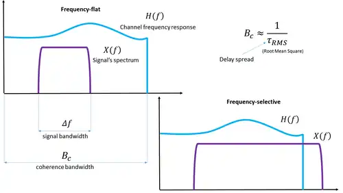- Dans l'atténuation sélective en fréquence la largeur de bande de cohérence du canal est plus petite que la largeur de bande du signal. Les différentes fréquences composant le signal subissent donc un évanouissement non corrélé.