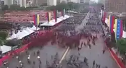 Deux petits drones transportant des explosifs ont explosé alors que le président Maduro prononçait un discours en plein air, probablement dans le but d'attaquer le président et d'autres responsables gouvernementaux. L'incident s'est produit au milieu d'un discours qu'il prononçait pour commémorer le 81e anniversaire de la Garde nationale bolivarienne. Le premier drone a survolé l'Avenida Bolivar, explosant en l'air au-dessus des gardes nationaux en rang[1]. Il a été rapporté que sept officiers de la Garde nationale impliqués dans le défilé ont été blessés et traités dans un hôpital, d'autres sources affirment ensuite qu'ils étaient huit. Après l'explosion, les gardes du corps ont immédiatement protégé Maduro avec des boucliers balistiques. Maduro, sa femme Cilia Flores et le ministre de la défense Vladimir Padrino López, qui se trouvaient à ses côtés, ont quitté les lieux sains et saufs. Une deuxième explosion a été entendue quelques secondes plus tard - des centaines de gardes nationaux ont fui la zone, abandonnant le président Maduro, et la diffusion de l'événement a été coupée. Malgré les images de gardes nationaux fuyant la scène qui ont été diffusées au public, le ministre de la Communication, Jorge Rodríguez, a faussement déclaré que les troupes avaient maintenu leurs rangs lors du défilé.