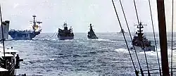 | USS Enterprise[Note 2] | 9e escadre aérienne embarquée | USS New Jersey (BB-62) | USS Sterett (en) | USS Meredith (en) | USS Gurke (en) |