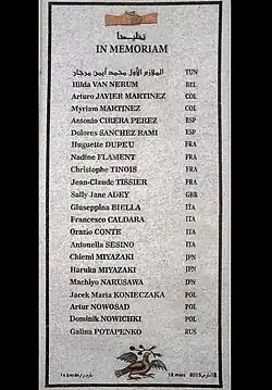 Le , une stèle est inaugurée à l'entrée du musée et liste les noms de ceux qui ont perdu la vie lors de cette tuerie[33].