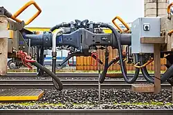 - L’attelage des véhicules et de leurs conduites de frein à air comprimé se fait automatiquement et remplace ainsi le processus manuel.