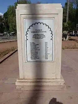 - Stèle commémorative dans le jardin à proximité de la place Djemaa-el-Fna