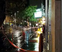 Périmètre de police à proximité du Métropolis après la fusillade du 4 septembre 2012 à Montréal. | |